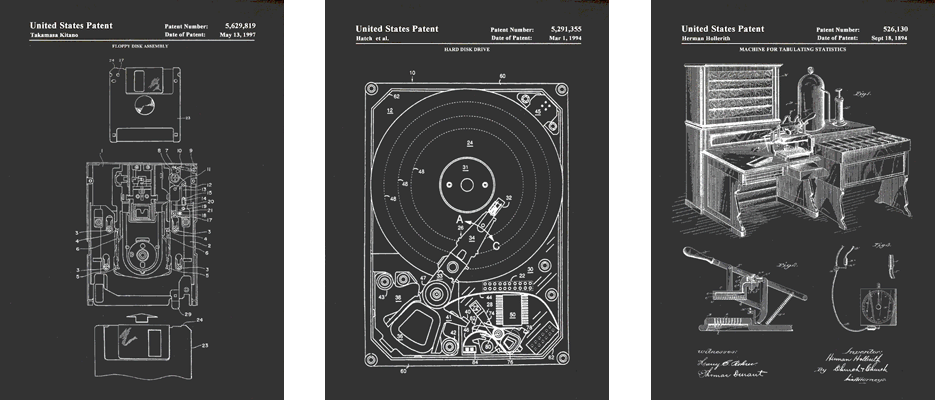 The beautiful details and artistry of their patent drawings, especially from the 19th and early 20th century, has been digitally restored and made available as wall art.